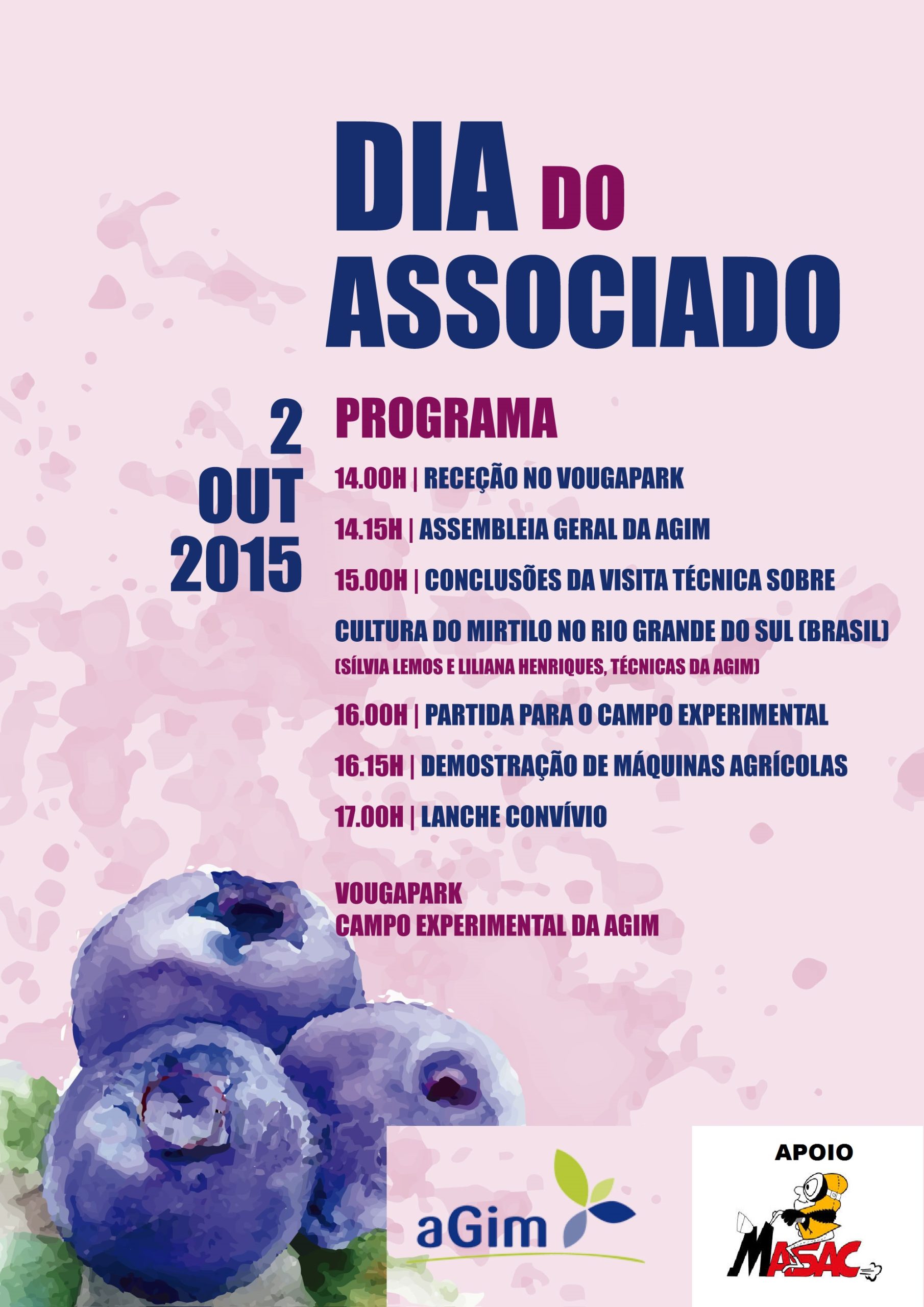 O programa começa no VougaPark, às 14.15 horas, com a Assembleia Geral da Agim. Segue-se uma palestra técnica “Conclusões da visita técnica sobre cultura do mirtilo no Rio Grande do Sul (Brasil)”, por Sílvia Lemos e Liliana Henriques.