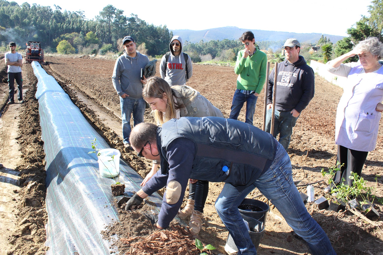 A segunda parte da formação será prática e irá desenvolver-se num pomar de mirtilos em fase de instalação. Será uma oportunidade para os participantes poderem observar ao vivo e praticar eles mesmos o modo como se faz um camalhão, como se aplica o sistema de rega, como se coloca a tela e, por fim, como se faz a correta colocação da planta do mirtilo no camalhão.